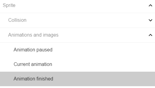 Add a new empty event and the condition "Sprite", "Animations and Images", "Animation finished".
