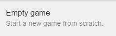 Next, you have the option to create a new project using a template or create an "Empty game" project.